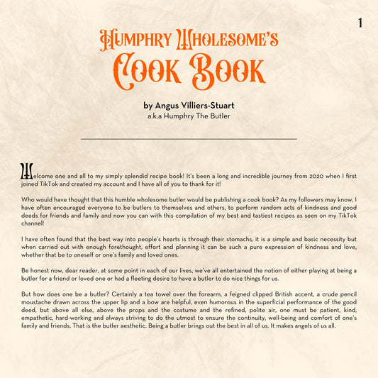 Greetings and salutations! My name is Humphry Wholesome, butler extraordinaire, a pleasure to make your acquaintance. I was revealed to the world on 14th Dec 2020 but I have been around for quite some time before then....In my years of buttling I have done my utmost to spread my message of being a butler to oneself and others in these trying times on various social media platforms ranging from Youtube, Instagram and most notably TikTok where I made my debut and now to further that message I have now established my own website where you can discover all sorts of wholesome treats, anecdotes and recipes! So step into my pantry and make yourself comfortable, you're welcome to stay as long as you like!
